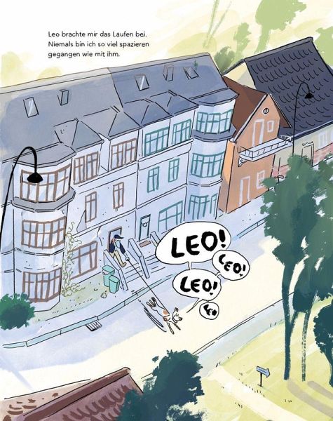 Leo ist ein außerordentlich begabter Hund. Er kann sprechen und eines schönen Tages setzt er sogar noch eins drauf: "Ich möchte lesen lernen!" So kommt es, dass Leo mit seinem Menschen bei jedem Spaziergang ein paar Schilder liest. "Ganz einfach", befindet er, "der Trick sind die Buchstaben". Den lesehungrigen Hund zieht es bald nur noch in die Stadt, wo sein Mensch sich vor all den Schildern und Schaufenstern, die Leo entziffert, die Beine in den Bauch steht, statt sie sich in der Natur zu vertreten - wozu hat Mensch denn einen Hund?! "Leo, lass das Lesen!" Zum Glück lässt er es nicht, denn schon beim nächsten Ausflug wird Leo zum lesenden Lebensretterhund! Eine fulminante Geschichte über das Lesen, getragen von Andreas Greves lebensklugem Humor und Lena Winkels lebendig-leichten Zeichnungen.
