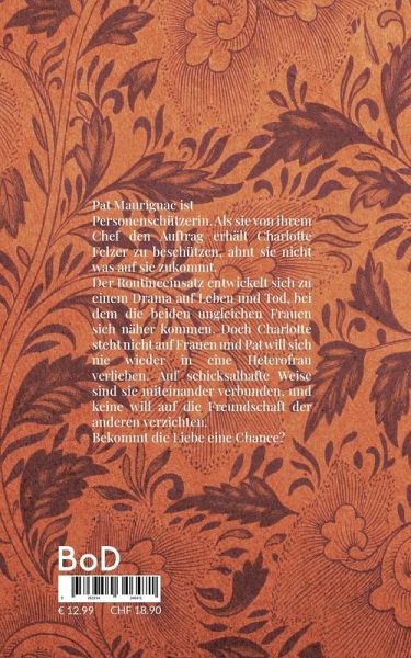 Pat Maurignac ist Personen-schützerin. Als sie von ihrem Chef den Auftrag erhält, Charlotte Felzer zu beschützen, ahnt sie nicht, was auf sie zukommt. Der Routineeinsatz entwickelt sich zu einem Drama auf Leben und Tod, bei dem die beiden un-gleichen Frauen sich näher kommen. Doch Charlotte steht nicht auf Frauen und Pat will sich nie wieder in eine Heterofrau verlieben. Auf schicksalhafte Weise sind sie miteinander verbunden und keine will auf die Freundschaft der Anderen verzichten. Bekommt die Liebe eine Chance?