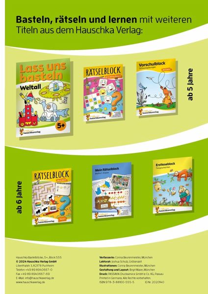 Aufgepasst, wir basteln! Mit unserer Bastelblock-Reihe können Kinder von 3 bis 5 Jahren kreativ werden. Ob schneiden, kleben, falten oder gestalten - die vielfältigen Bastelvorlagen bieten altersgerechte und bunte Ideen, die motorische Fähigkeiten fördern und stundenlangen Bastelspaß garantieren. Die Blöcke ab 3 Jahren sind als Ausschneidebuch konzipiert, um den ersten Umgang mit Schere und Kleber zu trainieren. In den Bastelblöcken ab 4 und ab 5 Jahren entstehen aus den vorgegebenen Papiervorlagen mit Schere, Kleber und Alltagsgegenständen wie Klorollen, Zahnstochern oder Streichholzschachteln kreative Kunstwerke - perfekt für kleine Bastelfans!
