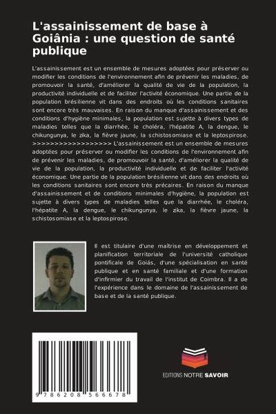 L'assainissement est un ensemble de mesures adoptées pour préserver ou modifier les conditions de l'environnement afin de prévenir les maladies, de promouvoir la santé, d'améliorer la qualité de vie de la population, la productivité individuelle et de faciliter l'activité économique. Une partie de la population brésilienne vit dans des endroits où les conditions sanitaires sont encore très mauvaises. En raison du manque d'assainissement et des conditions d'hygiène minimales, la population est sujette à divers types de maladies telles que la diarrhée, le choléra, l'hépatite A, la dengue, le chikungunya, le zika, la fièvre jaune, la schistosomiase et la leptospirose. >>>>>>>>>>>>>>>>>> L'assainissement est un ensemble de mesures adoptées pour préserver ou modifier les conditions de l'environnement afin de prévenir les maladies, de promouvoir la santé, d'améliorer la qualité de vie de la population, la productivité individuelle et de faciliter l'activité économique. Une partie de la population brésilienne vit dans des endroits où les conditions sanitaires sont encore très précaires. En raison du manque d'assainissement et de conditions minimales d'hygiène, la population est sujette à divers types de maladies telles que la diarrhée, le choléra, l'hépatite A, la dengue, le chikungunya, le zika, la fièvre jaune, la schistosomiase et la leptospirose.