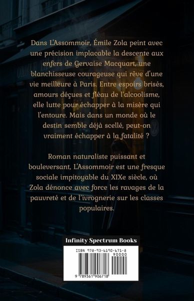 Dans L'Assommoir, Émile Zola peint avec une précision implacable la descente aux enfers de Gervaise Macquart, une blanchisseuse courageuse qui rêve d'une vie meilleure à Paris. Entre espoirs brisés, amours déçues et fléau de l'alcoolisme, elle lutte pour échapper à la misère qui l'entoure. Mais dans un monde où le destin semble déjà scellé, peut-on vraiment échapper à la fatalité ? Roman naturaliste puissant et bouleversant, L'Assommoir est une fresque sociale impitoyable du XIXe siècle, où Zola dénonce avec force les ravages de la pauvreté et de l'ivrognerie sur les classes populaires.