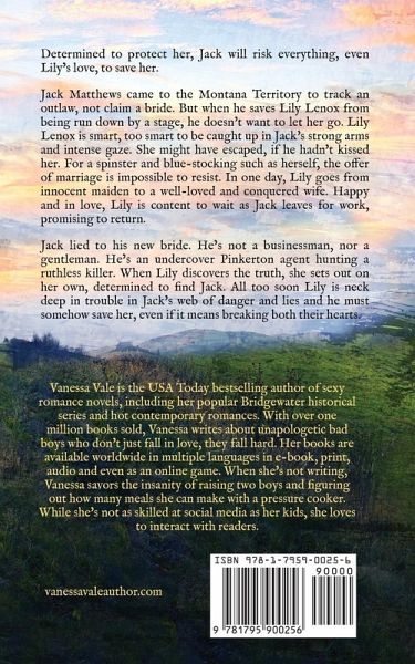 Determined to protect her, Jack will risk everything, even Lily's love, to save her. Jack Matthews came to the Montana Territory to track an outlaw, not claim a bride. But when he saves Lily Lenox from being run down by a stage, he doesn't want to let her go. Lily Lenox is smart, too smart to be caught up in Jack's strong arms and intense gaze. She might have escaped, if he hadn't kissed her. For a spinster and blue-stocking such as herself, the offer of marriage is impossible to resist. In one day, Lily goes from innocent maiden to a well-loved and conquered wife. Happy and in love, Lily is content to wait as Jack leaves for work, promising to return. Jack lied to his new bride. He's not a businessman, nor a gentleman. He's an undercover Pinkerton agent hunting a ruthless killer. When Lily discovers the truth, she sets out on her own, determined to find Jack. All too soon Lily is neck deep in trouble in Jack's web of danger and lies and he must somehow save her, even if it means breaking both their hearts. This book was previously published as Lily in the Wildflower Brides series.