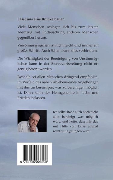 Viele Menschen schlagen sich bis zum letzten Atemzug mit Enttäuschung anderen Menschen gegenüber herum.Versöhnung fällt schwer, ist immer ein großer Schritt und kann auch mit Scham zu tun haben.Die Wichtigkeit der Bereinigung von Unstimmigkeiten kann in der Sterbevorbereitung nicht oft genug betont werden.Deshalb sei allen Menschen dringend empfohlen, im Vorfeld des nahen Ablebens eines Angehörigen mit ihm zu bereinigen, was zu bereinigen möglich ist. Dann kann der Heimgehende in Liebe und Frieden loslassen.