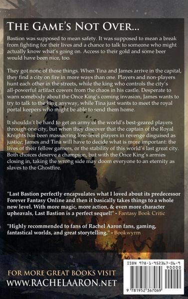 Bastion was supposed to mean safety. It was supposed to mean a break from fighting for their lives and a chance to talk to someone who might actually know what's going on. Access to their gold and some beer would have been nice, too. They got none of those things. When Tina and James arrive in the capital, they find a city on fire in more ways than one. Players and non-players hunt each other in the streets, while the king who controls the city's all-powerful artifact cowers from the chaos in his castle. Desperate to warn somebody about the Once King's coming invasion, James wants to try to talk to the king anyway, while Tina just wants to meet the royal portal keepers who might be able to send them home. It shouldn't be hard to get an army of the world's best-geared players through one city, but when they discover that the captain of the Royal Knights has been massacring low-level players in revenge disguised as justice, James and Tina will have to decide what is more important: the lives of their fellow gamers, or the stability of this world's last great city. Both choices deserve a champion, but with the Once King's armies closing in, taking the wrong side may doom everyone to an eternity as slaves to the Ghostfire.