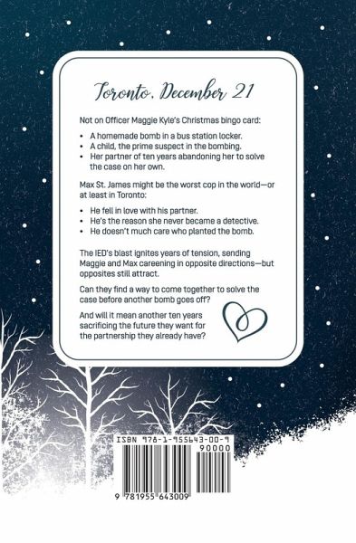 1st place winner of the 30th annual Writer's Digest Awards. The only case they haven't cracked is how to be together. Not on Officer Maggie Kyle's Christmas bingo card:A homemade bomb in a bus station locker. A child, the prime suspect in the bombing. Her partner of ten years abandoning her to solve the case on her own. Max St. James might be the worst cop in the world-or at least in Toronto:He fell in love with his partner. He's the reason she never became a detective. He doesn't much care who planted the bomb. The IED's blast ignites years of tension, sending Maggie and Max careening in opposite directions-but opposites still attract. Can they find a way to come together to solve the case before another bomb goes off? And will it mean another ten years sacrificing the future they want for the partnership they already have?