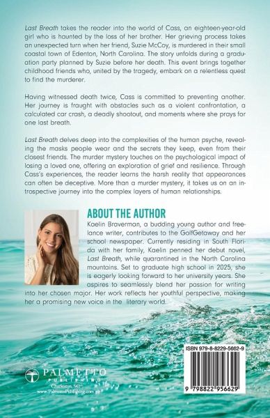 Unraveling Secrets & Confronting Grief: A Teen's Pursuit of Justice in a Small Town. A Tale of Friendship, Resilience & the Hidden Layers of Human Psyche. In Last Breath, we journey alongside eighteen-year-old Cass, a teenager grappling with the haunting loss of her brother, Eli. However, the murder of her friend, Suzie McCoy, in the coastal town of Edenton, North Carolina, forces her to face her buried pain in a startling new way. This gripping narrative unfolds during a graduation party. This gathering of childhood friends, planned by Suzie before her untimely demise, becomes a daunting arena of revelation. The friends, driven by the shared tragedy, embark on a relentless hunt for the murderer. Their pursuit for justice, marked by skill and chance, forms the backbone of the story. Cass emerges as the unwavering force in the face of adversity. She has stared death in the face twice and is hell-bent on halting the ruthless cycle. The story takes us on a roller-coaster ride, with a series of intense events including a violent confrontation, a deliberate car crash, a lethal shootout, and heart-stopping moments of praying for one last breath. Last Breath is an exploration of the depths of the human psyche. We see through Cass's eyes, the facades people maintain and the secrets they guard, even among closest friends. While Cass deals with the psychological trauma of losing a loved one, she uses her pain to fuel her search. This tale reveals the harsh truth of the world to Cass - things aren't always as they seem. Drawing parallels to Karen M. McManus's One of Us is Lying and Victoria Laurie's When, Last Breath stands on its own as an introspective journey into grief, resilience, and the complex layers of human relationships. With a gripping narrative told in the first person, Last Breath leaves room for potential sequels that are as thrilling and thought-provoking as the first.