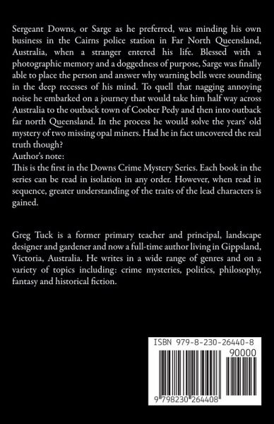 Sergeant Downs, or Sarge as he preferred, was minding his own business in the Cairns police station in Far North Queensland, Australia, when a stranger entered his life. Blessed with a photographic memory and a doggedness of purpose, Sarge was finally able to place the person and answer why warning bells were sounding in the deep recesses of his mind. To quell that nagging annoying noise he embarked on a journey that would take him half way across Australia to the outback town of Coober Pedy and then into outback far north Queensland. In the process he would solve the years' old mystery of two missing opal miners. Had he in fact uncovered the real truth though? Author's note: This is the first in the Downs Crime Mystery Series. Each book in the series can be read in isolation in any order. However, when read in sequence, greater understanding of the traits of the lead characters is gained.
