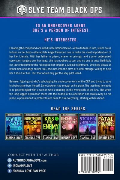 "I could not put this book down...Once again Dianna has thrilled my suspense taste buds with an extra dash of spicy romance."~~ After Hours Rendezvous On the run from a madman, she can't trust anyone, but the hot pilot with too many secrets has her heart pounding out of control. Escaping the compound of a deadly international felon with his fortune in rare, stolen coins hidden on her body, elite athlete Angel Farentino must make the most important run of her life. With a prior undeserved drug-muling conviction hanging over her head, she can trust no one, definitely not law enforcement who railroaded her through a judicial nightmare. One step ahead of lethal men and dogs on her trail, she runs into the arms of a dark stranger willing to help her if she'd let him. But that would only get the sexy pilot killed. To an undercover agent, the pretty mystery named Angel is a Person of Interest. Zane Jackson's interested. Between figuring out who sabotaging his undercover work for the DEA and trying to save his baby sister from herself, Zane has enough on his plate. The last thing he needs is to get entangled with a woman who's treading on the wrong side of the law. But when the long-legged distraction races into the middle of his operation and stows away on his plane, a primal need to protect her forces Zane to risk everything, starting with his heart. "Engrossing, thrilling and wonderfully steamy ... to the last shocking revelation." ~~The Romance Reviews "... cleverly builds suspense until the nerve-racking conclusion." ~~SingleTitles.com "...a no-holds-barred read. The action sizzles! At times the suspense will have you biting your nails, sitting on the edge of your seat or holding your breath." ~~Goodreads "LAST CHANCE TO RUN...reminded me of Cinderella. Well, if Cinderella was on the run from a maniac killer and Prince Charming wielded a gun and flew a plane. Great read. Check it out!" ~~Bryonna Nobles, The Paperback Cafe