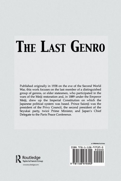 First Published in 2005, but published originally in 1938 on the eve of the Second World War, this work focuses on the last member of a distinguished group of genros, or elder statesmen, who participated in the wars of the Meiji restoration and in 1889 under Emperor Meiji, drew up the Imperial Constitution on which the Japanese political system was based. Prince Saionji was the president of the Privy Council, the second president of the Seyukai party, twice Prime Minster and Japan's Chief Delegate to the Paris Peace Conference.