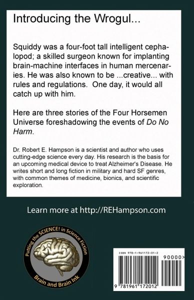 Introducing the Wrogul... Squiddy was a four-foot tall intelligent cephalopod; a skilled surgeon known for implanting brain-machine interfaces in human mercenaries. He was also known to be ...creative... with rules and regulations. One day, it would all catch up with him. Here are three stories of the Four Horsemen Universe foreshadowing the events of Do No Harm.
