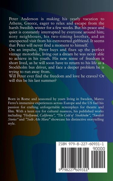 Peter Anderson is making his yearly vacation to Athens, Greece, eager to relax and escape from the harsh Swedish winter for a few weeks. But his peace and quiet is constantly interrupted by everyone around him; nosy neighbours, his two-timing brother, and an unexpected visit from his extroverted girlfriend. It seems that Peter will never find a moment to himself. On an impulse, Peter buys and fixes up the perfect vintage motorbike, living out a dream he was never able to achieve in his youth. His new sense of freedom is short lived, as he will soon have to return to his life as a Stockholm bus driver, and face a deeper problem he is trying to run away from. Will Peter ever find the freedom and love he craves? Or will this be his last summer?