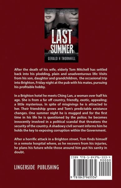 After the death of his wife, elderly Tom Mitchell has settled back into his plodding, plain and unadventurous life: Visits from his son, daughter and grandchildren, the occasional trip into Brighton, Friday night at the pub with his mates, pursuing his profitable hobby. In a Brighton hotel he meets Ching Lan, a woman over half his age. She is from a far off country, friendly, exotic, appealing; a little mysterious. In spite of misgivings he is attracted to her. Their friendship grows and Tom’s predictable existance changes. One summer night he is mugged and for the first time in his life he is questioned by the police; he becomes innocently involved in a political scandal that threatens the security o After the death of his wife, elderly Tom Mitchell has settled back into his plodding, plain and unadventurous life: Visits from his son, daughter and grandchildren, the occasional trip into Brighton, Friday night at the pub with his mates, pursuing his profitable hobby. In a Brighton hotel he meets Ching Lan, a woman over half his age. She is from a far off country, friendly, exotic, appealing; a little mysterious. In spite of misgivings he is attracted to her. Their friendship grows and Tom’s predictable existance changes. One summer night he is mugged and for the first time in his life he is questioned by the police; he becomes innocently involved in a political scandal that threatens the security of the country. A shadowy civil servant informs him he holds the key to exposing corruption within the Government. After a horrific attack in a Brighton street, Tom finds himself in a remote hospital where, as he recovers from his injuries, he plans his future while those around him put his sanity in doubt. f the country. A shadowy civil servant informs him he holds the key to exposing corruption within the Government. After a horrific attack in a Brighton street, Tom finds himself in a remote hospital where, as he recovers from his injuries, he plans his future while those around him put his sanity in doubt.