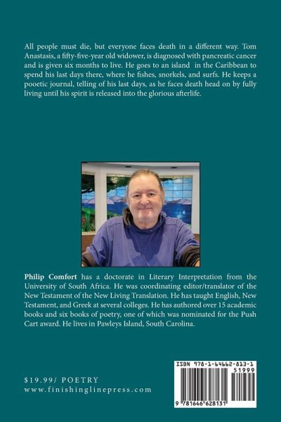 All people must die, but everyone faces death in a different way. Tom Anastasis, a fifty-five-year old widower, is diagnosed with pancreatic cancer and is given six months to live. He goes to an island in the Caribbean to spend his last days there, where he fishes, snorkels, and surfs. He keeps a pooetic journal, telling of his last days, as he faces death head on by fully living until his spirit is released into the glorious afterlife.