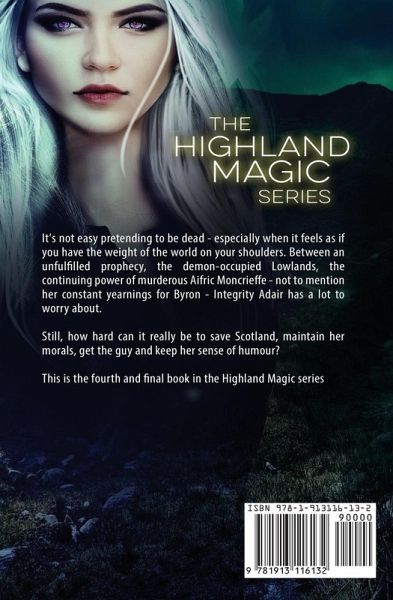 It's not easy pretending to be dead - especially when it feels as if you have the weight of the world on your shoulders. Between an unfulfilled prophecy, the demon-occupied Lowlands, the continuing power of murderous Aifric Moncrieffe - not to mention her constant yearnings for Byron - Integrity Adair has a lot to worry about. Still, how hard can it really be to save Scotland, maintain her morals, get the guy and keep her sense of humour? This is the fourth and final book in the Highland Magic series