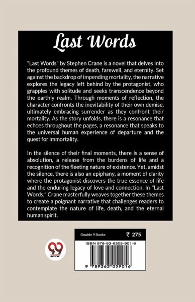 "Last Words" by Stephen Crane is a novel that delves into the profound themes of death, farewell, and eternity. Set against the backdrop of impending mortality, the narrative explores the legacy left behind by the protagonist, who grapples with solitude and seeks transcendence beyond the earthly realm. Through moments of reflection, the character confronts the inevitability of their own demise, ultimately embracing surrender as they confront their mortality. As the story unfolds, there is a resonance that echoes throughout the pages, a resonance that speaks to the universal human experience of…mehr