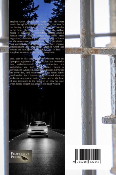 Late, Late in the Evening presents readers with the dystopian nightmare of a Britain which has descended into authoritarianism, where nationalism and xenophobia are now the guiding values of government. Advanced surveillance means individuals are never free, and robot armies make states almost invulnerable. But it is never straightforward when one wishes to suppress an entire nation, and at the heart of any resistance is the question of how we react when forced to fight in a conflict we never wanted. This is the story of a poet who must confront the nightmare of dictatorship. Imprisoned for his writings, Gabe is released into a life little better than slavery, serving a member of the ruling party and in constant danger from the merciless agents who guard the country estate where he now lives. Any infraction could mean returning to prison or even execution. Yet there is still the prospect of being reunited with the family who escaped before the borders closed, and the longer he remains on the estate, the more he realises that he is not alone in his opposition to the country's new rulers. He also finds himself drawing closer to Caroline, the enigmatic wife of his master. As events in the wider world become ever more unstable, Gabe will have to decide where his ultimate loyalties lie and whether he will fight or run.