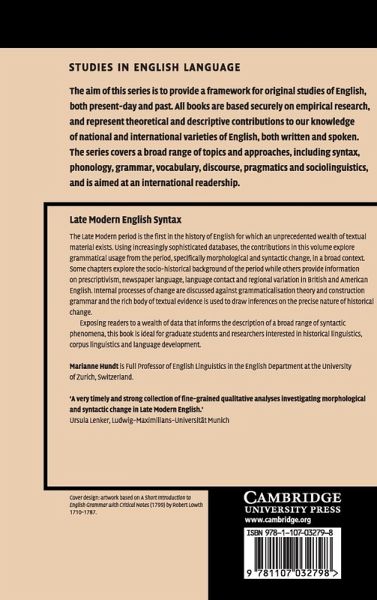The Late Modern period is the first in the history of English for which an unprecedented wealth of textual material exists. Using increasingly sophisticated databases, the contributions in this volume explore grammatical usage from the period, specifically morphological and syntactic change, in a broad context. Some chapters explore the socio-historical background of the period while others provide information on prescriptivism, newspaper language, language contact, and regional variation in British and American English. Internal processes of change are discussed against grammaticalisation theory and construction grammar and the rich body of textual evidence is used to draw inferences on the precise nature of historical change. Exposing readers to a wealth of data that informs the description of a broad range of syntactic phenomena, this book is ideal for graduate students and researchers interested in historical linguistics, corpus linguistics and language development.
