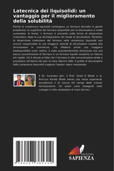 Poiché le compresse liquisolidi contengono un farmaco disciolto in glicole propilenico, la superficie del farmaco disponibile per la dissoluzione è molto aumentata. In breve, il farmaco è presente sotto forma di dispersione molecolare, dopo la sua disintegrazione nel mezzo di dissoluzione. Pertanto, la dispersione molecolare del farmaco nelle compresse liquisolidi può essere responsabile di una maggiore velocità di dissoluzione rispetto alla formulazione in commercio. Ciò rifletterà anche una maggiore biodisponibilità orale. Inoltre, è stato precedentemente dimostrato che una bassa concentrazione di farmaco in un farmaco liquido comporta un rilascio più rapido. Ciò è dovuto al fatto che il farmaco in alta concentrazione tende a precipitare all'interno dei pori di silice (Aerosil 200). Il profilo di dissoluzione delle compresse liquisolidi supporta l'ipotesi sopra menzionata.