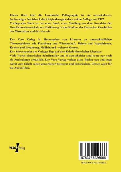 Dieses Buch über die Lateinische Paläographie ist ein unveränderter, hochwertiger Nachdruck der Originalausgabe der zweiten Auflage von 1912.