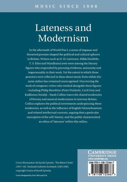 In the aftermath of World War I, a sense of impasse and thwarted promise shaped the political and cultural spheres in Britain. Writers such as D. H. Lawrence, Hilda Doolittle, T. S. Eliot and Wyndham Lewis were among the literary figures who responded by pursuing vividness, autonomy and impersonality in their work. Yet the extent to which these practices were reflected in ideas about music from within the same milieu has remained unrecognised. Uncovering the work of composer-critics who worked alongside these figures - including Philip Heseltine (Peter Warlock), Cecil Gray and Kaikhosru Sorabji - Sarah Collins traces the shared tendencies of literary and musical modernisms in interwar Britain. Collins explores the political investments underpinning these tendencies, as well as the influence of English Nietzscheanism and related intellectual currents, arguing that a particular conception of the self, history, and the public characterised an ethos of 'lateness' within this milieu.