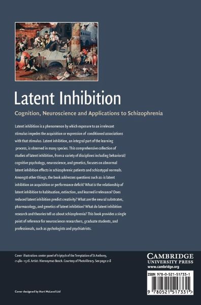 Preface R. E. Lubow and Ina Weiner; 1. A short history of latent inhibition research R. E. Lubow; Part I. Behaviour and Cognition: 2. Latent inhibition and extinction: their signature phenomena and the role of error correction R. F. Westbrook and M. E. Bouton; 3. Inter-stage context and time as determinants of latent inhibition G. L. De la Casa and Oskar Pineno; 4. Latent inhibition: acquisition or performance deficit? Martha Escobar and Ralph Miller; 5. Latent inhibition and learned irrelevance in human contingency learning M. E. LePelley and Mia Schmidt-Hansen; 6. Associative and non-associative processes in latent inhibition: an elaboration of the Pearce-Hall model Geoffrey Hall and G. Rodriguez; 7. From latent inhibition to retrospective reevaluation learning: an attentional-associative model Nestor Schmajuk; 8. Latent inhibition and habituation: evaluation of an associative analysis R. C. Honey, M. Iordanova and M. Good; 9. Latent inhibition and creativity Shelley Carson; Part II. Neurobiology: 10. The phylogenetic distribution of latent inhibition R. E. Lubow; 11. The genetic component of latent inhibition: studies of inbred and mutant mice Tatiana Lipina and John Roder; 12. A comparison of mechanisms underlying the CS-US Association and the CS-Nothing Association T. Gould; 13. The pharmacology of latent inhibition and its relevance to schizophrenia Ina Weiner and M. Arad; 14. Parahippocampal region-dopaminergic neuron relationships in latent inhibition A. Louilot, J. Jeanblanc, Y. Peterschmitt and F. Meyer; 15. Latent inhibition and other effects from salience modulation: do they share the same neural substrates? Helen Cassaday and Paul Moran; 16. What the brain teaches us about latent inhibition (LI): the neural substrates of the expression and prevention of LI Ina Weiner; Part III. Latent Inhibition and Schizophrenia: 17. Latent inhibition in schizophrenia and schizotypy: a review of the empirical literature Veena Kumari and Ulrich Ettinger; 18. A cautionary note about latent inhibition in schizophrenia: are we ignoring relevant information? Neil Swerdlow; 19. Latent inhibition as a function of anxiety and stress: implications for schizophrenia Hedva Braunstein-Bercovitz; 20. Nicotinic modulation of attentional deficits in schizophrenia Paul Schnur and Allison Hoffman; 21. Latent inhibition and schizophrenia: the ins and outs of context R. E. Lubow; 22. Summary and conclusions: some unresolved and controversial issues in latent inhibition research and theory R. E. Lubow and Ina Weiner.