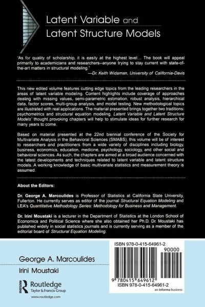 This edited volume features cutting-edge topics from the leading researchers in the areas of latent variable modeling. Content highlights include coverage of approaches dealing with missing values, semi-parametric estimation, robust analysis, hierarchical data, factor scores, multi-group analysis, and model testing. New methodological topics are illustrated with real applications. The material presented brings together two traditions: psychometrics and structural equation modeling. Latent Variable and Latent Structure Models' thought-provoking chapters from the leading researchers in the area will help to stimulate ideas for further research for many years to come. This volume will be of interest to researchers and practitioners from a wide variety of disciplines, including biology, business, economics, education, medicine, psychology, sociology, and other social and behavioral sciences. A working knowledge of basic multivariate statistics and measurement theory is assumed.