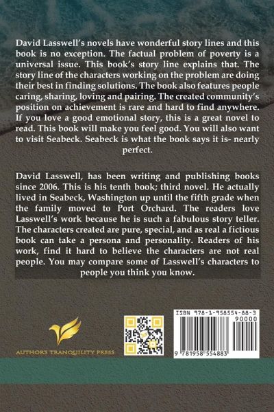 David Lasswell's novels have wonderful story lines and this book is no exception. The factual problems of poverty, is a universal issue. This book's story line explains that. The story line of the characters working on the problem are doing their best in finding solutions. The book also features people caring, sharing, loving and pairing. The created community's position on achievement is rare and hard to find anywhere. If you love a good emotional story, this is a great novel to read. This book will make you feel good. You will also want to visit Seabeck. Seabeck is what the book says it is- nearly perfect.