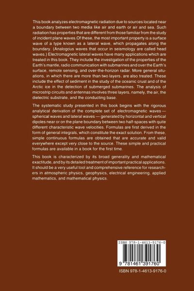 1 Historical and Technical Overview of Electromagnetic Surface Waves; Introduction to Lateral Waves.- 2 Electromagnetic Preliminaries.- 3 The Electromagnetic Field of a Unit Vertical Electric Dipole in the Presence of a Plane Boundary.- 4 Applications of the Theory of the Vertical Dipole Near The Boundary Between Two Half-Spaces.- 5 The Electromagnetic Field of a Horizontal Electric Dipole in the Presence of a Plane Boundary.- 6 Interference Patterns; Comparison of Approximate Formulas with General Integrals and Measurements.- 7 Applications of the Theory of the Horizontal Dipole Near the Boundary Between Air and Earth or Sea.- 8 The Measurement of the Conductivity of the Oceanic Lithosphère with a Horizontal Antenna as the Source.- 9 Lateral Waves in a One-Dimensionally Anisotropie Half-Space.- 10 The Propagation of Lateral Electromagnetic Waves in Air over Vertical Discontinuities.- 11 The Horizontally Layered Half-Space.- 12 The Three-Layer Problem for Sediment on the Oceanic Crust.- 13 Exact Formulas for the Lateral Electromagnetic Pulses Generated by Vertical Dipoles.- 14 Approximate Formulas for Lateral Electromagnetic Pulses Generated by Vertical and Horizontal Electric Dipoles.- 15 The Propagation of Signals Along a Three-Layered Region: Open Microstrip.- 16 Antennas in Material Media Near Boundaries: The Bare Metal Dipole.- 17 Antennas in Material Media Near Boundaries: The Terminated Insulated Antenna.- 18 The Wave Antenna.- Appendix A: Tabulation of Integrals.- Appendix B: Evaluation of Integrals with Radicals in the Integrand.- Appendix C: Evaluation of Integrals of Bessel Functions.- Appendix D: Evaluation of Integrals with Products and Quotients of Radicals.- Appendix G: Evaluation of Integrals for the Power in the Air and in the Earth Radiated by aVertical Dipole in the Air above a Dielectric Earth.
