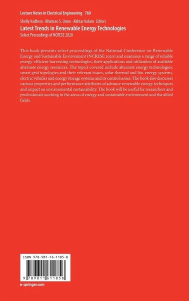 This book presents select proceedings of the National Conference on Renewable Energy and Sustainable Environment (NCRESE 2020) and examines a range of reliable energy-efficient harvesting technologies, their applications and utilization of available alternate energy resources. The topics covered include alternate energy technologies, smart grid topologies and their relevant issues, solar thermal and bio-energy systems, electric vehicles and energy storage systems and its control issues. The book also discusses various properties and performance attributes of advance renewable energy techniques and impact on environmental sustainability. The book will be useful for researchers and professionals working in the areas of energy and sustainable environment and the allied fields.