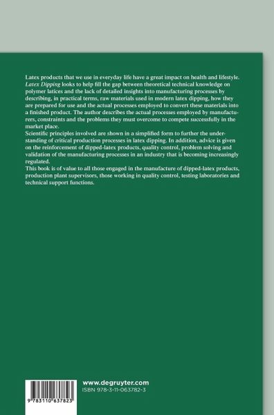 Latex products that we use in everyday life have a great impact on health and lifestyle. This book gives a comprehensive overview of how raw materials are prepared for latex manufacture and how they are converted to products by modern latex dipping methods. Tools for how to solve production problems encountered, quality control and how to validate the processes used in the latex industry are thoroughly discussed and described.
