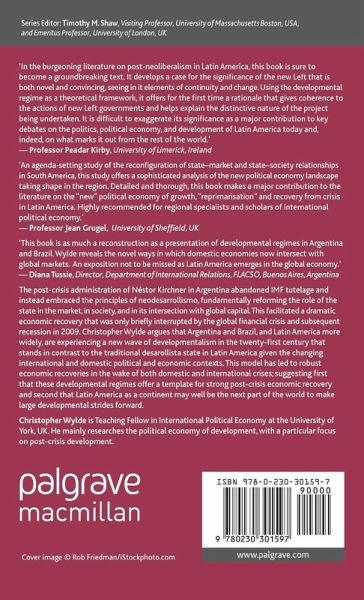 'In the burgeoning literature on post-neoliberalism in Latin America, this book is sure to become a groundbreaking text. It develops a case for the significance of the new left that is both novel and convincing, seeing in it elements of continuity and change. Using the developmental regime as a theoretical framework, it offers for the first time a rationale that gives coherence to the actions of new left governments and helps explain the distinctive nature of the project being undertaken. It is difficult to exaggerate its significance as a major contribution to key debates on the politics, political economy and development of Latin America today and, indeed, on what marks it out from the rest of the world.' - Professor Peadar Kirby, University of Limerick, Ireland
