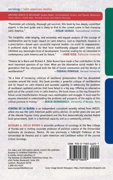Passionate yet scholarly, thorough yet succinct, this book by two deeply committed experts is the best guide one is likely to find to the current scene in fast-changing Latin America. -- Susan George, Transnational Institute At a time of increasing criticism of neoliberal globalization that has devastated societies around the world, this book provides a powerful critique of neoliberalism and its impact on Latin America and succeeds superbly in addressing the problems of neoliberal capitalist policies that have failed in a big way. Offering an alternative path out of the current crisis in Latin America, the book shows us the way forward for its future social transformation through mass mobilization and struggle. A must-read for anyone interested in understanding the problems and prospects of the region at this critical juncture in history. -- Berch Berberoglu, University of Nevada, Reno An insightful, wide-ranging and extremely well argued analysis of the scourge of neoliberalism and its tragic impact on Latin America. Just as important, however, is a prescription-based upon successful regional models-to avoid its reappearance. A profound study on the ills that have traditionally plagued Latin America and inhibited any meaningful form of development. Essential reading for all interested in contemporary Latin America, and its future. -- John M. Kirk, Dalhousie University Ximena de la Barra and Richard Dello Buono have made a fine contribution to the most important question of our time: what are the alternative social models for a generation that has witnessed both the fall of Soviet communism and the demise of neoliberalism? -- Thomas Ponniah, Harvard University