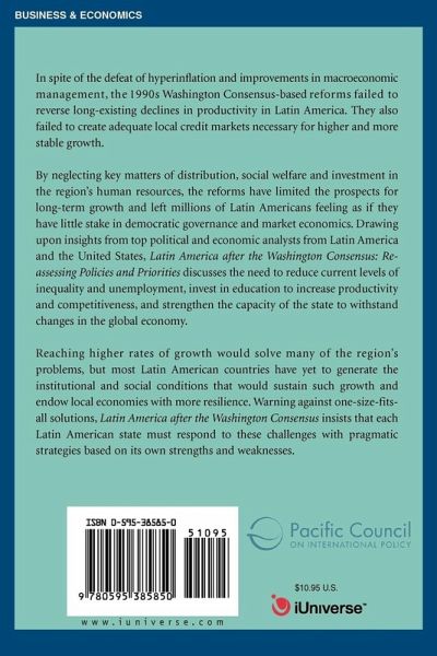 In spite of the defeat of hyperinflation and improvements in macroeconomic management, the 1990s Washington Consensus-based reforms failed to reverse long-existing declines in productivity in Latin America. They also failed to create adequate local credit markets necessary for higher and more stable growth. By neglecting key matters of distribution, social welfare and investment in the region's human resources, the reforms have limited the prospects for long-term growth and left millions of Latin Americans feeling as if they have little stake in democratic governance and market economics. Drawing upon insights from top political and economic analysts from Latin America and the United States, Latin America after the Washington Consensus: Re-assessing Policies and Priorities discusses the need to reduce current levels of inequality and unemployment, invest in education to increase productivity and competitiveness, and strengthen the capacity of the state to withstand changes in the global economy. Reaching higher rates of growth would solve many of the region's problems, but most Latin American countries have yet to generate the institutional and social conditions that would sustain such growth and endow local economies with more resilience. Warning against one-size-fits-all solutions, Latin America after the Washington Consensus insists that each Latin American state must respond to these challenges with pragmatic strategies based on its own strengths and weaknesses.