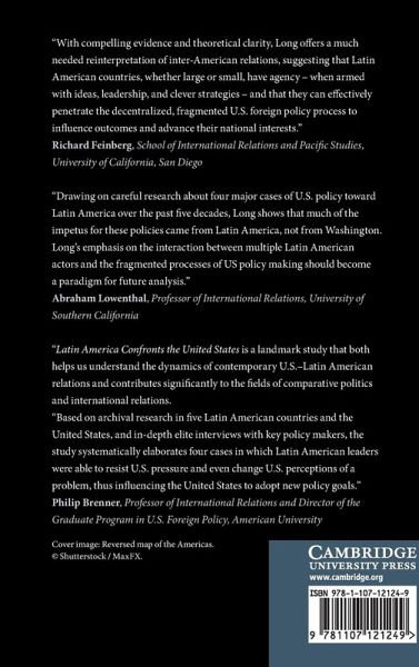 Latin America Confronts the United States offers a new perspective on US-Latin America relations. Drawing on research in six countries, the book examines how Latin American leaders are able to overcome power asymmetries to influence US foreign policy. The book provides in-depth explorations of key moments in post-World War II inter-American relations - foreign economic policy before the Alliance for Progress, the negotiation of the Panama Canal Treaties, the expansion of trade through the North American Free Trade Agreement, and the growth of counternarcotics in Plan Colombia. The new evidence challenges earlier, US-centric explanations of these momentous events. Though differences in power were fundamental to each of these cases, relative weakness did not prevent Latin American leaders from aggressively pursuing their interests vis-à-vis the United States. Drawing on studies of foreign policy and international relations, the book examines how Latin American leaders achieved this influence - and why they sometimes failed.