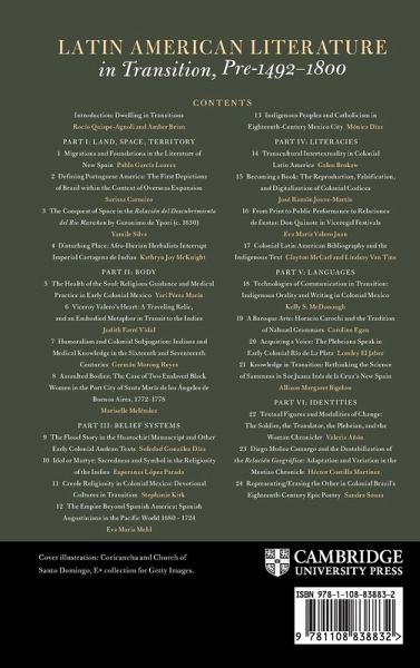 This volume examines the transitions from approximately 1492-1800 that intersected and shaped the emergence of Latin America and its distinctive literary production. It is built around six thematic areas that underline the key processes that shaped this period and its legacy: space; body; belief systems; literacies; languages; and identities.