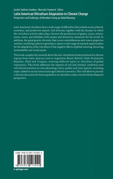This book compiles the research about the new viticultural trends performed in diverse regions from Latin America such as Argentina, Brazil, Bolivia, Chile, Dominican Republic, Haiti and Uruguay, covering different topics in viticulture of global importance. This book addresses the impacts of soil and climatic conditions and viticultural practices on vine physiology, berry quality and wine typicity, including topics related to social sciences and agricultural economics. This will allow to provide a relevant discussion for future guidelines in viticulture under a territorial development perspective.