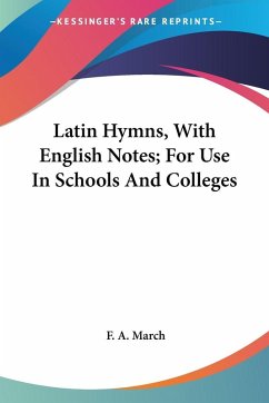 Latin Hymns, With English Notes; For Use In Schools And Colleges is a book written by F. A. March. The book is a collection of Latin hymns with accompanying English notes for use in educational institutions such as schools and colleges. The hymns are written in Latin, which is the language of the Catholic Church, and they have been used for centuries in religious ceremonies and celebrations. The book provides an opportunity for students to learn about the history and significance of Latin hymns, as well as the language itself. The English notes that accompany each hymn provide context and explanations of difficult words and phrases, making the text more accessible to readers. The book is intended for use by students, teachers, and anyone interested in the history and significance of Latin hymns.This scarce antiquarian book is a facsimile reprint of the old original and may contain some imperfections such as library marks and notations. Because we believe this work is culturally important, we have made it available as part of our commitment for protecting, preserving, and promoting the world's literature in affordable, high quality, modern editions, that are true to their original work.