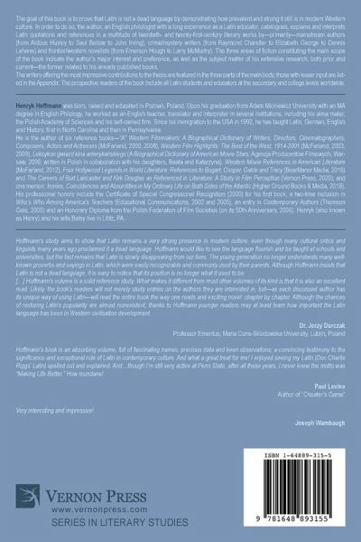The goal of this book is to prove that Latin is not a dead language by demonstrating how prevalent and strong it still is in modern Western culture. In order to do so, the author, an English philologist with a long experience as a Latin educator, catalogues, explains and interprets Latin quotations and references in a multitude of twentieth- and twenty-first-century literary works by-primarily-mainstream authors (from Aldous Huxley to Saul Bellow to John Irving), crime/mystery writers (from Raymond Chandler to Elizabeth George to Dennis Lehane) and frontier/western novelists (from Emerson Hough to Larry McMurtry). The three areas of fiction constituting the main scope of the book indicate the author's major interest and preference, as well as the subject matter of his extensive research, both prior and current-the former related to his already published books. The writers offering the most impressive contributions to the thesis are featured in the three parts of the main body; those with lesser input are listed in the Appendix. The prospective readers of the book include all Latin students and educators at the secondary and college levels worldwide.