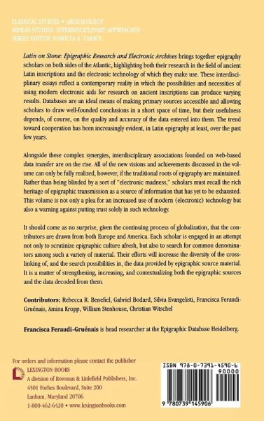 Latin on Stone brings together epigraphy scholars on both sides of the Atlantic, highlighting both their research in the field of ancient Latin inscriptions and the electronic technology of which they make use. These interdisciplinary essays show how the use of modern electronic aids for research on ancient inscriptions can produce very differing results.