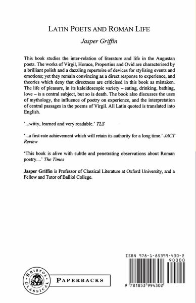 This book studies the interrelation of literature and life in the Augustan poets. The works of Virgil, Horace, Propertius and Ovid are characterised by a brilliant polish and a dazzling repertoire of devices for stylising events and emotions; yet they remain convincing as a direct response to experience and theories which deny that directness are criticised in this book as mistaken. The life of pleasure, in its kaleidoscopic variety - eating, drinking, bathing, love - is a central subject but so is death. The book also discusses the uses of mythology, the influence of poetry on experience, and the interpretation of passages in the poems of Virgil. All Latin quoted is translated into English.