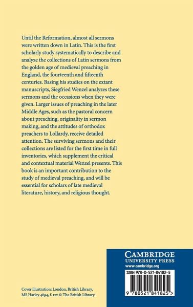 Until the Reformation, almost all sermons were written down in Latin. This is the first scholarly study systematically to describe and analyse the collections of Latin sermons from the golden age of medieval preaching in England, the fourteenth and fifteenth centuries. Basing his studies on the extant manuscripts, Siegfried Wenzel analyses these sermons and the occasions when they were given. Larger issues of preaching in the later Middle Ages such as the pastoral concern about preaching, originality in sermon making, and the attitudes of orthodox preachers to Lollardy, receive detailed attention. The surviving sermons and their collections are listed for the first time in full inventories, which supplement the critical and contextual material Wenzel presents. This book is an important contribution to the study of medieval preaching, and will be essential for scholars of late medieval literature, history and religious thought.