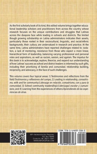 As the first scholarly book of its kind, this edited volume brings together educational leadership scholars and practitioners from across the country whose research focuses on the unique contributions and struggles that Latinas across the diaspora face while leading in schools and districts. The limited though growing scholarship on Latina administrators indicates their assets, particularly those rooted in their sociocultural, linguistic, and racial/ethnic backgrounds, their cultura, are undervalued in research and practice (Hernandez & Murakami, 2016; Martinez, Rivera, & Marquez, 2019; Méndez-Morse, 2000; Méndez-Morse, Murakami, Byrne-Jimenez, & Hernandez, 2015). At the same time, Latina administrators have reported challenges related to: isolation (Hernandez & Murakami, 2016), a lack of mentoring (Méndez-Morse, 2004), resistance from those who expect a more linear, hierarchical form of leadership (Gonzales, Ulloa, & Muñoz, 2016), balancing varying professional and personal roles and aspirations (Murakami-Ramalho, 2008), as well as racism, sexism, and ageism (Bagula, 2016; Martinez, Marquez, Cantú, & Rocha, 2016). The impetus for this book is to acknowledge, explore, theorize, and expand our understanding of how Latinas' success as school and district leaders is informed by such gifts, including their prioritizing of familia and communidad, relationship building, reciprocity, and advocacy, in the face of such challenges. Thus, this volume covers four topical areas: 1) Testimonies and reflections from the field/Testimonios y reflexiones del campo, 2) Leading in relationship, comadrismo, with and for community/Liderazgo en relación, comadrismo, con y para la comunidad, 3) School community leaders(hip)/Lider(azgo) escolar y comunitario 4) Learning from the experiences of others/Aprendiendo de las experiencias de otras.