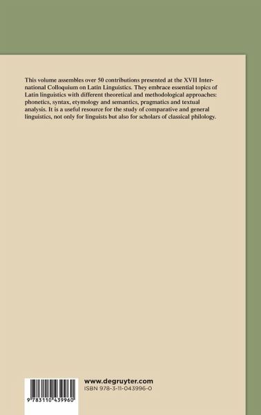 This volume assembles 50 contributions presented at the XVII International Colloquium on Latin Linguistics. They embrace essential topics of Latin linguistics with different theoretical and methodological approaches: phonetics, syntax, etymology and semantics, pragmatics and textual analysis. It is a useful resource for the study of comparative and general linguistics, not only for linguists but also for scholars of classical philology.