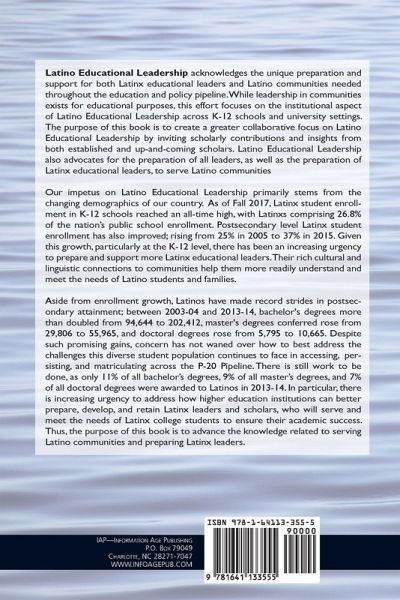 Latino Educational Leadership acknowledges the unique preparation and support for both Latinx educational leaders and Latino communities needed throughout the education and policy pipeline. While leadership in communities exists for educational purposes, this effort focuses on the institutional aspect of Latino Educational Leadership across K-12 schools and university settings. The purpose of this book is to create a greater collaborative focus on Latino Educational Leadership by inviting scholarly contributions and insights from both established and up-and-coming scholars. Latino Educational Leadership also advocates for the preparation of all leaders as well as the preparation of Latinx educational leaders, to serve Latino communities. Our impetus on Latino Educational Leadership primarily stems from the changing demographics of our country. As of Fall 2017, Latinx student enrollment in K-12 schools reached an all-time high, with Latinxs comprising 26.8% of the nation's public school enrollment. Postsecondary level Latinx student enrollment has also improved; rising from 25% in 2005 to 37% in 2015. Given this growth, particularly at the K-12 level, there has been an increasing urgency to prepare and support more Latinx educational leaders. Their rich cultural and linguistic connections to communities help them more readily understand and meet the needs of Latino students and families. Aside from enrollment growth, Latinxs have made record strides in postsecondary attainment; between 2003-04 and 2013-14, bachelor's degrees more than doubled from 94,644 to 202,412, master's degrees conferred rose from 29,806 to 55,965, and doctoral degrees rose from 5, 795 to 10,665. Despite such promising gains, concern has not waned over how to best address the challenges this diverse student population continues to face in accessing, persisting, and matriculating across the P-20 Pipeline. There is still work to be done, as only 11% of all bachelor's degrees, 9% of all master's degrees, and 7% of all doctoral degrees were awarded to Latinxs in 2013-14. In particular, there is increasing urgency to address how higher education institutions can better prepare, develop, and retain Latinx leaders and scholars, who will serve and meet the needs of Latinx college students to ensure their academic success. Thus, the purpose of this book is to advance the knowledge related to serving Latino communities and preparing Latinx leaders.
