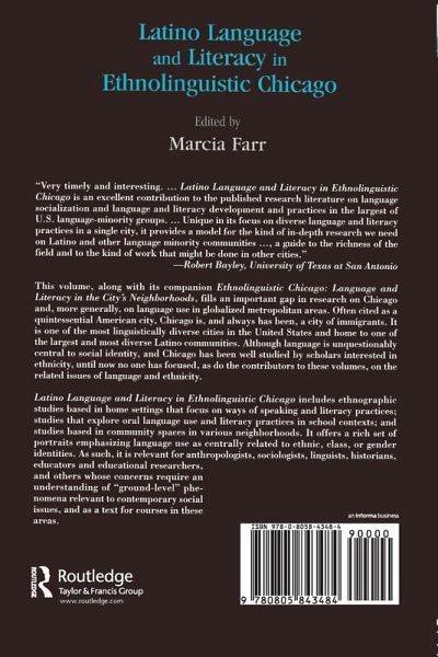 This volume--along with its companion Ethnolinguistic Chicago: Language and Literacy in the City's Neighborhoods--fills an important gap in research on Chicago and, more generally, on language use in globalized metropolitan areas. Often cited as a quintessential American city, Chicago is, and always has been, a city of immigrants. It is one of the most linguistically diverse cities in the United States and home to one of the largest and most diverse Latino communities. Although language is unquestionably central to social identity, and Chicago has been well studied by scholars interested in ethnicity, until now no one has focused--as do the contributors to these volumes--on the related issues of language and ethnicity. Latino Language and Literacy in Ethnolinguistic Chicago includes: *ethnographic studies based in home settings that focus on ways of speaking and literacy practices; *studies that explore oral language use and literacy practices in school contexts; and *studies based in community spaces in various neighborhoods. It offers a rich set of portraits emphasizing language use as centrally related to ethnic, class, or gender identities. As such, it is relevant for anthropologists, sociologists, linguists, historians, educators and educational researchers, and others whose concerns require an understanding of "ground-level" phenomena relevant to contemporary social issues, and as a text for courses in these areas.
