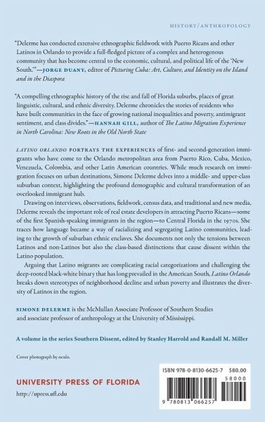 Latino Orlando portrays the experiences of first- and second-generation immigrants who have come to the Orlando metropolitan area from Puerto Rico, Cuba, Mexico, Venezuela, Colombia, and other Latin American countries. While much research on immigration focuses on urban destinations, Simone Delerme delves into a middle- and upper-class suburban context, highlighting the profound demographic and cultural transformation of an overlooked immigrant hub.