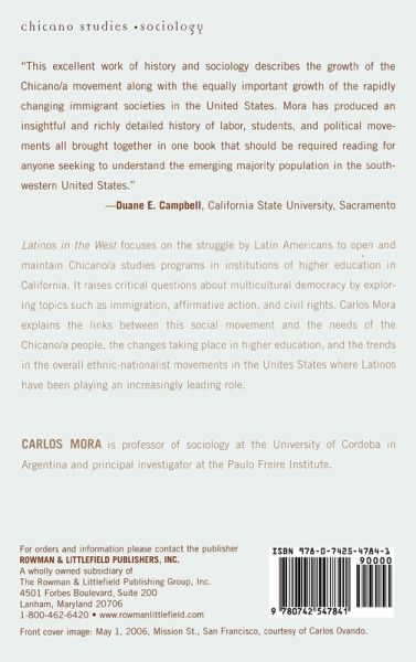 Latinos in the West arrives at a precipitous time when our understanding of the important historical and revolutionary role of Latino/as in our country needs to be deepened and appreciated. If democracy and social justice are to arrive in the United States, the nation must take account of the leadership role of the Latino/a populations, and not just those within the United States, but also those that are mobilizing south of 'la linea.' -- Peter McLaren, University of California, Los Angeles In Latinos in the West, students, teachers, researchers, policy makers, and school leaders will find a well-researched and clearly articulated account of the role played by Latino/a student activists in defense of higher education visa-vis larger sociopolitical dynamics in the United States. Carlos Mora has exposed the causes that produce tension and anxiety between the Latino/a community, higher education, and sectors of the dominant society, and it is time to pay attention to his reasonable recommendations for a more smoothly intertwined world. -- Carlos J. Ovando, Arizona State University To my knowledge, this is the first detailed and systematic chronicle and analysis of the Chicano/a social movement that developed at UCLA and sparked attention throughout California and the United States. As as result of this Movement, the quality of scholarship on Chicano/a Studies have increased dramatically both in quality and quantity, and Chicano/a Studies are now being accepted as bonafide Department in key US Universities, a long overdue process. Carlos Mora Ninci offers a fresh, articulated and insightful perspective on the history of Chicano/a struggles in the United States, and the UCLA movement, and a wonderful and refreshing as well as hopeful landscape for the educational future of people of color in the United States. A must to read... -- Carlos Alberto Torres, director, Paulo Freire Institute, UCLA Finally, a book that in pursuing a faithful recording of the role played by Chicano youth in bringing about a change in the contents of higher learning in the US west, accomplishes the feat of belying a long-standing stereotype: that of inaction on the part of the descendents of Mexicans. An added plus, for those who teach American Studies, is the section dedicated to understanding the current plight of undocumented foreigners and the strategies the latter have adopted to demonstrate their adherence to the values the United States stands for... -- Sheila Carmody, professor emeritus of American Studies, National University of Cordoba, Argentina This study makes excellent use of personal interviews, the records of Chicano activist groups, student revolutionary pamphlets, newspapers, fieldwork narratives of the Chicano studies strikes, contemporary journals, and a wealth of secondary scholarship relating to higher education. -- Ryan Dearinger Southern California Quarterly This excellent work of history and sociology describes the growth of the Chicano/a movement along with the equally important growth of the rapidly changing immigrant societies in the US. Mora has produced an insightful and richly detailed history of labor, students, and political movements all brought together in one book that should be required reading for anyone seeking to understand the emerging majority population in the Southwestern US. -- Duane E. Campbell, California State University, Sacramento To my knowledge, this is the first detailed and systematic chronicle and analysis of the Chicano/a social movement that developed at UCLA and sparked attention throughout California and the United States. As as result of this Movement, the quality of scholarship on Chicano/a Studies have increased dramatically both in quality and quantity, and Chicano/a Studies are now being accepted as bonafide Department in key US Universities, a long overdue process. Carlos Mora Ninci offers a fresh, articulated and insightful perspective on the history of Chicano/a struggles in the United States, and the UCLA movement, and a wonderful and refreshing as well as hopeful landscape for the educational future of people of color in the United States. A must to read. -- Carlos Alberto Torres, director, Paulo Freire Institute, UCLA Finally, a book that in pursuing a faithful recording of the role played by Chicano youth in bringing about a change in the contents of higher learning in the US west, accomplishes the feat of belying a long-standing stereotype: that of inaction on the part of the descendents of Mexicans. An added plus, for those who teach American Studies, is the section dedicated to understanding the current plight of undocumented foreigners and the strategies the latter have adopted to demonstrate their adherence to the values the United States stands for. -- Sheila Carmody, professor emeritus of American Studies, National University of Cordoba, Argentina