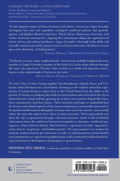 The Latinx Urban Condition brings together interdisciplinary cultural theory and U.S. Latinx urban literature, focusing on the realities and urban experiences of Latinx living in major cities in the United States from the 1960s to the present. The manuscript focuses on analyzing the works of Latinx authors who write about the city.