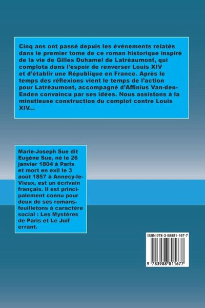 Cinq ans ont passé depuis les événements relatés dans le premier tome de ce roman historique inspiré de la vie de Gilles Duhamel de Latréaumont, qui complota dans l'espoir de renverser Louis XIV et d'établir une République en France. Après le temps des réflexions vient le temps de l'action pour Latréaumont, accompagné d'Affinius Van-den-Enden convaincu par ses idées. Nous assistons à la minutieuse construction du complot contre Louis XIV...