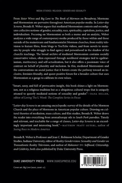 Brenda R. Weber examines how the mediation of Mormonism through film, TV, blogs, YouTube videos, and memoirs functions as a means to understand conversations surrounding gender, sexuality, spirituality, capitalism, justice, and individualism in the United States.